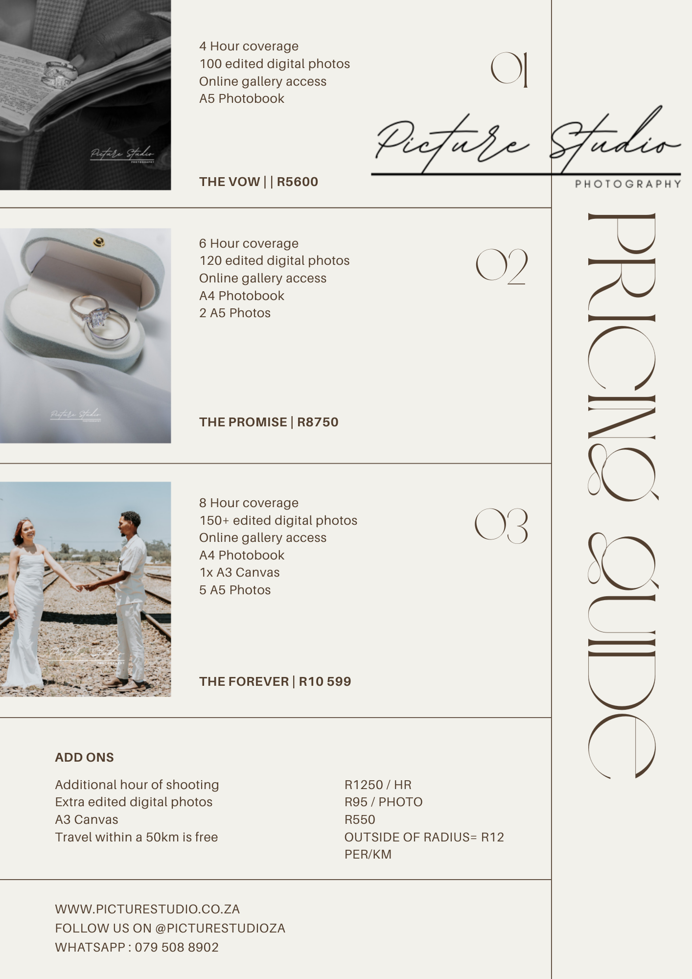 Let us setup a meeting to discuss your needs in details. You worry about your vows and we will make sure we capture every moment.